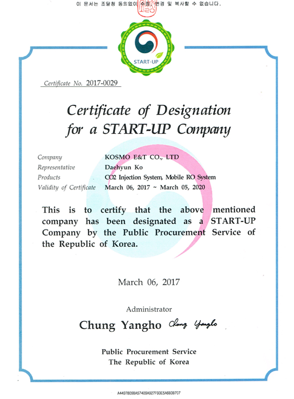 Certificate of patent_CO2 Injection System