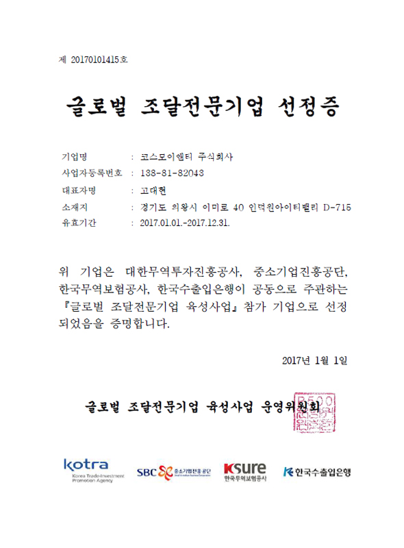 Components Specialized Company Certificate