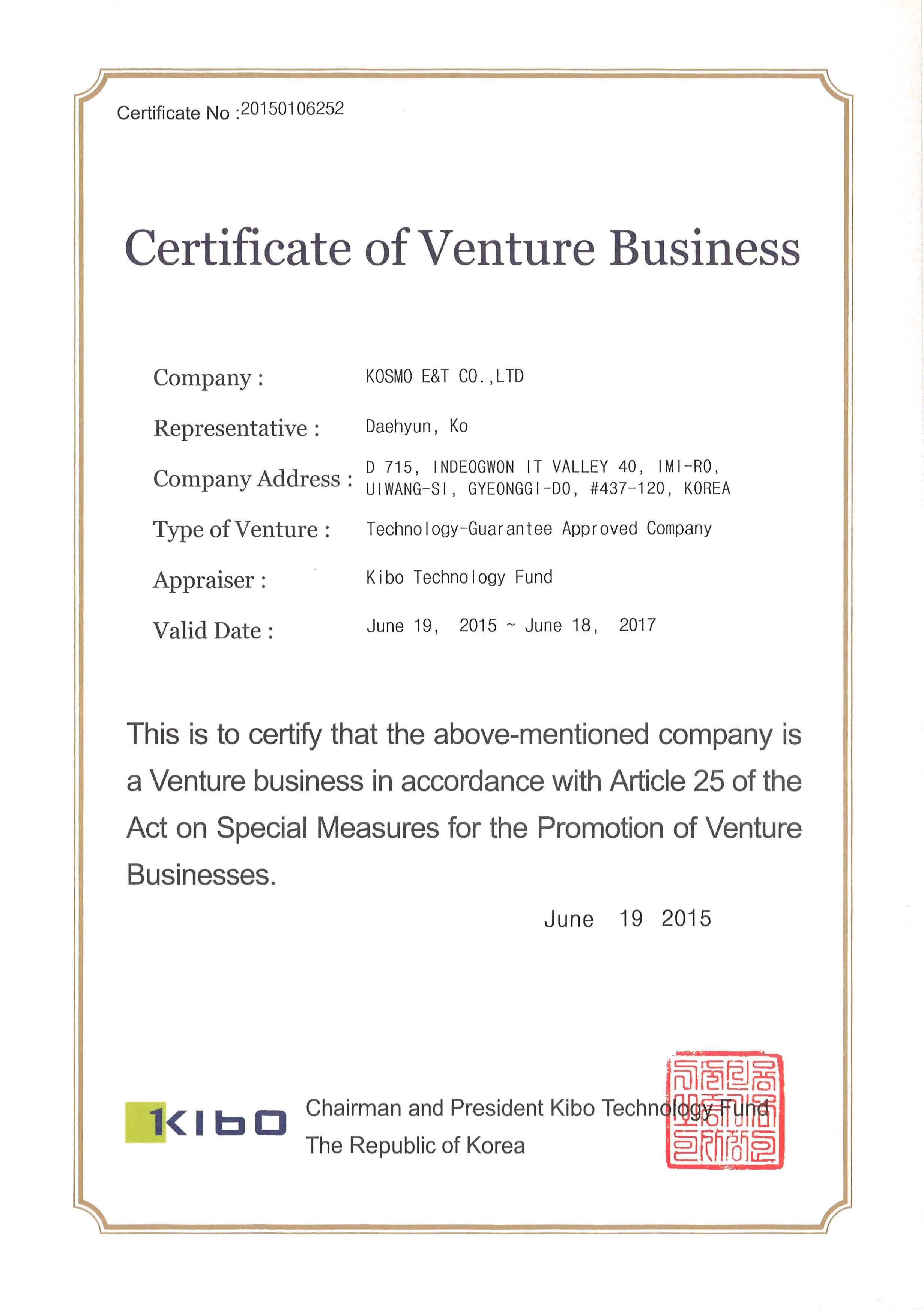 Certificate of Venture Business